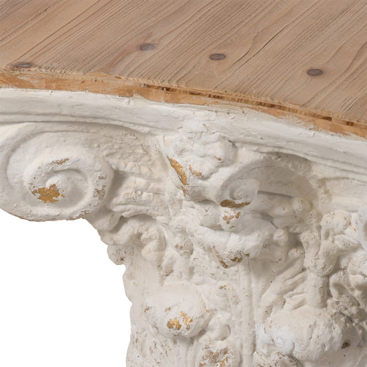 A&B Home 24" x 28" Bundle of 8 Round Weathered White Wooden Carved Table