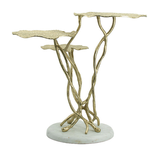 A&B Home 25" x 24" Bundle of 4 White Marble Base With Three-Tiered Gold End Table