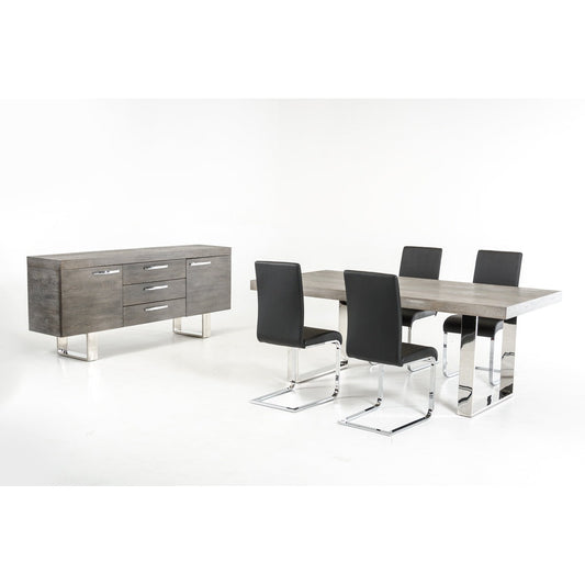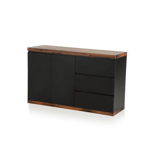 HomeRoots 34" Veneer And Steel Buffet With 3 Drawers And 2 Doors In Grey Finish