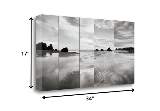 HomeRoots 34" Modern Black and White Beach Giclee Wrap Canvas Wall Art