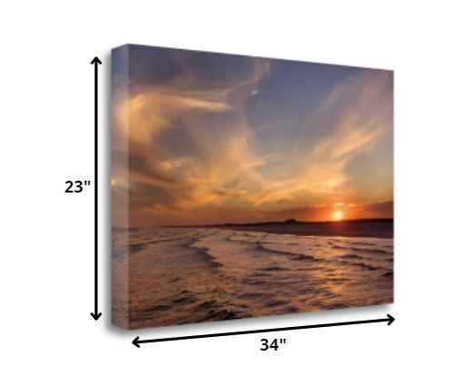HomeRoots 34" Picturesque Sunset Beach View Giclee Wrap Canvas Wall Art