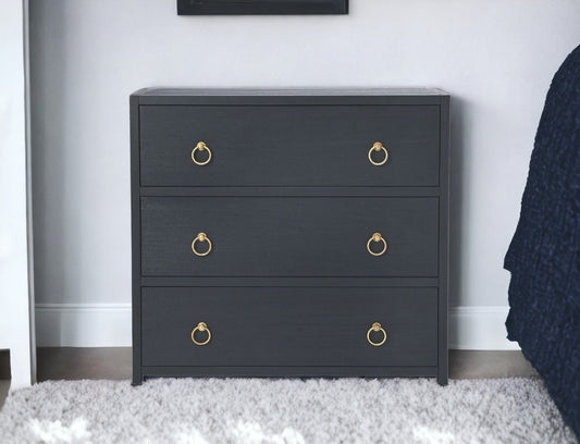 HomeRoots 34" Three Drawer Standard Chest in Navy Blue Finish
