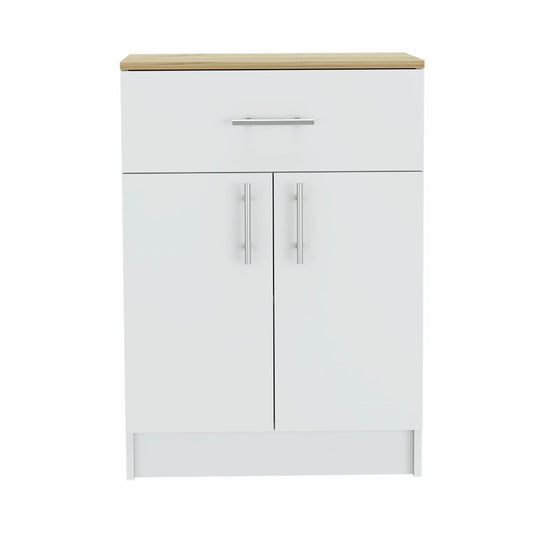 HomeRoots 34" Pantry Cabinet With Light Oak And White Finish