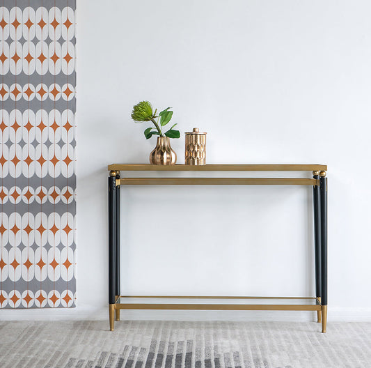 A&B Home 42" x 32" Bundle of 7 Rectangle Gold Glass Tabletop With Black Metal Console Table
