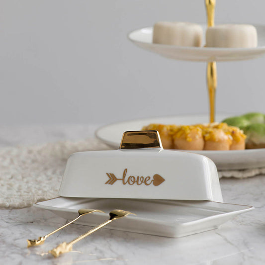 A&B Home Amore 7" Bundle of 115 Creamy White With Gold Accent Ceramic Butter Dish