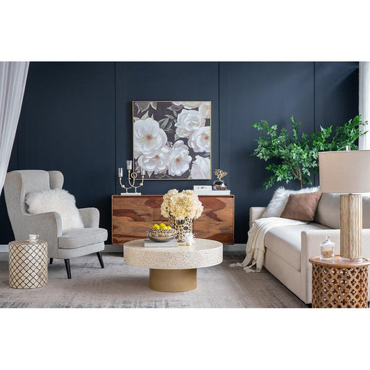 A&B Home Becket 20" x 20" Bundle of 21 Wood Tabletop With Gold Tri Legs Coffee Table