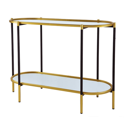 A&B Home Bertram 41" x 30" Bundle of 8 Oval Mirrored Tabletop With Gold and Black Metal Console Table