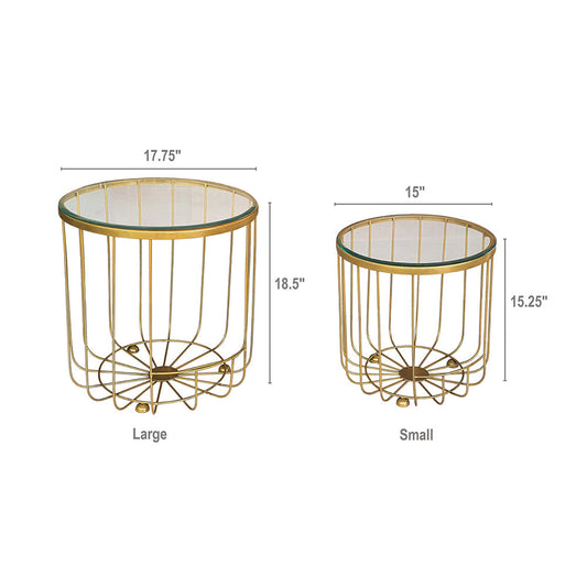 A&B Home Bundle of 12 Carinae Set of Two Round Gold Metallic Frame Side Table With Glass Tabletop