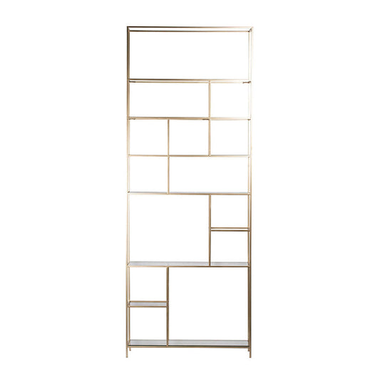 A&B Home Etagere 30" x 79" Bundle of 5 Rectangular Champagne Gold Metal Frame Six-Tiered Glass Shelves