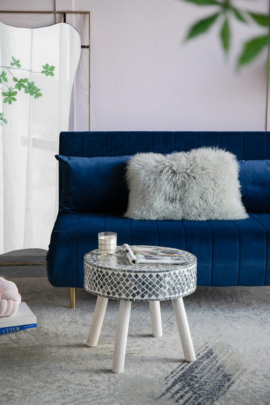 A&B Home Janus 18" x 16" Bundle of 7 Round Gray and Ivory Tabletop With Wood Accent Table