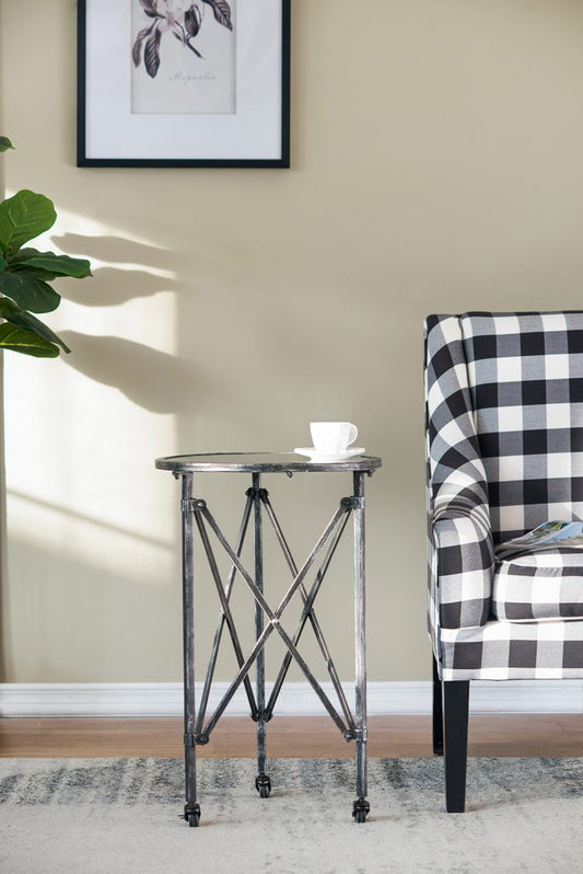 A&B Home Gilbert 17" x 27" Bundle of 24 Round Antique Silver Frame Rolling Side Table With Glass Tabletop