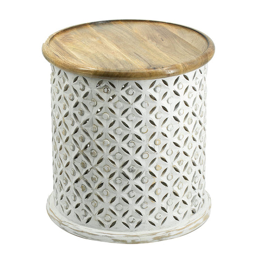 A&B Home Jali Set of Two Bundle of 7 White Cylinder Cutting Side Table With Brown Wooden Tabletop