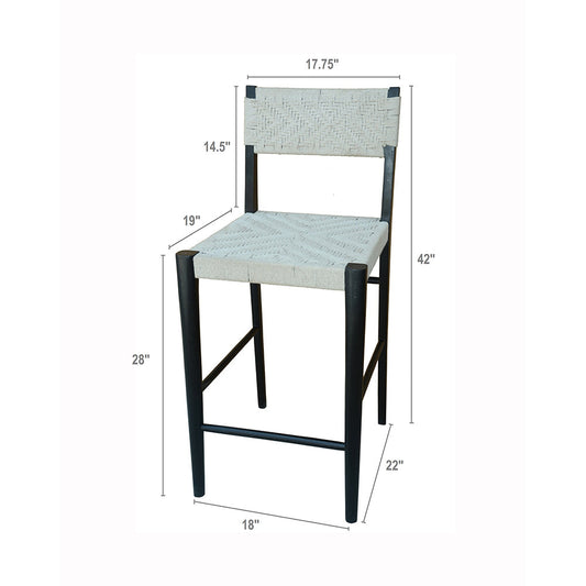 A&B Home Kalessi 19" x 42" Bundle of 8 Cream Woven With Black Acacia Legs Weaving Bar Chair