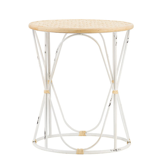 A&B Home Set of 2 Bundle of 40 Round White Painted Floral Design Accent Tables