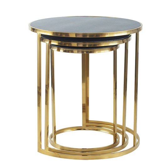 A&B Home Set of 3 Bundle of 5 Round Gray Leather Tabletop With Gold Frame Nesting Tables