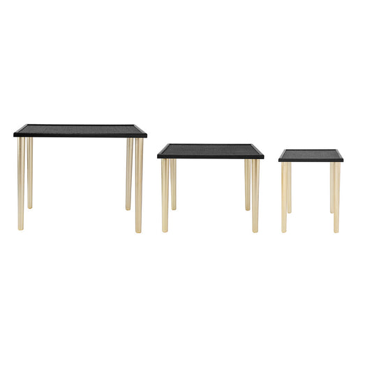 A&B Home Set of Three Bundle of 13 Rectangular Black Rattan Tabletop Side Tables With Gold Wooden Legs