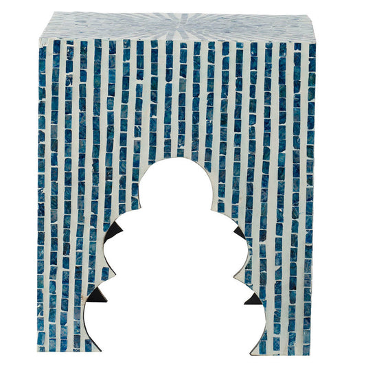 A&B Home Set of Two Bundle of 10 Blue and White Mosaic Tile Stools