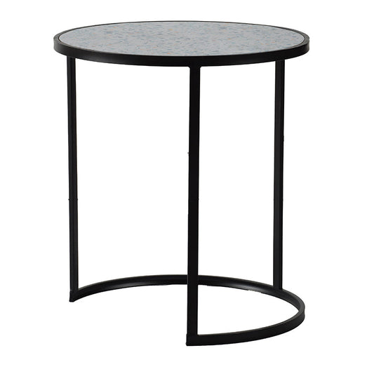 A&B Home Set of Two Bundle of 15 Round Black Metal Frame Table With Blue and White Speckled Table Top