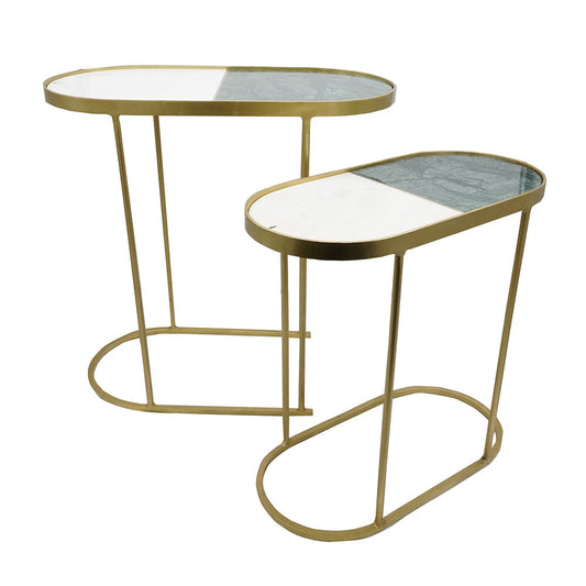 A&B Home Set of Two Bundle of 6 Oval Two-Toned Gold Inlay Marble Tabletop Nesting Tables