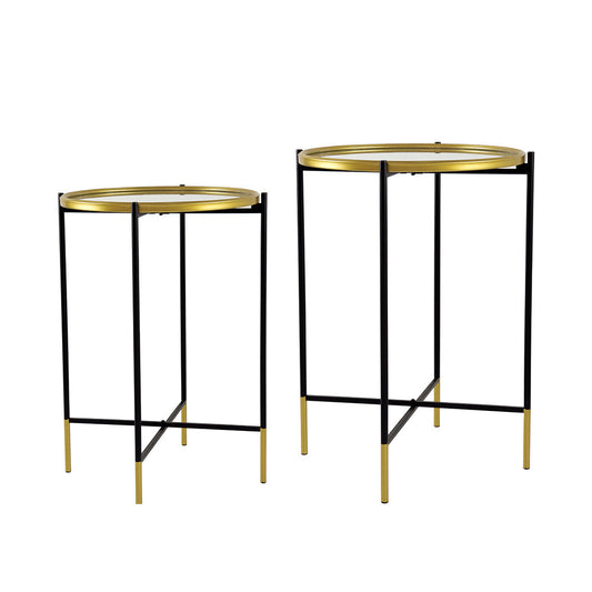 A&B Home Set of Two Bundle of 15 Mirrored Tabletop With Gold and Black Frame Side Tables