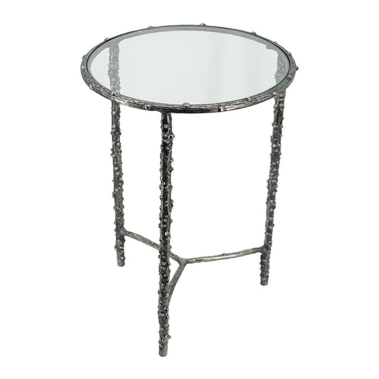 A&B Home Set of Two Bundle of 8 Round Antique Silver Accent Table
