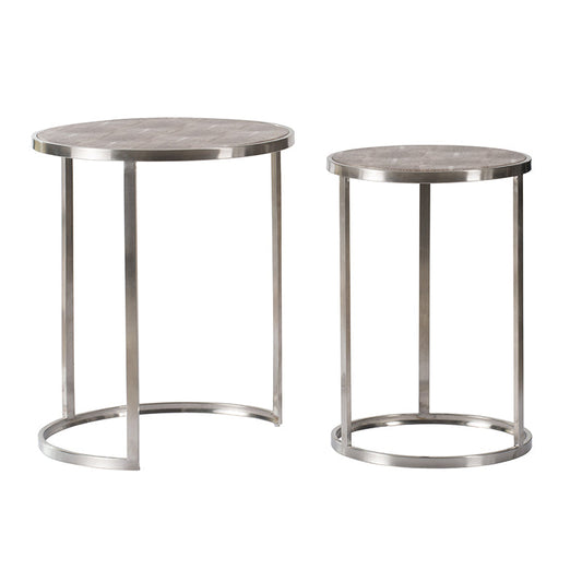 A&B Home Set of Two Bundle of 9 Round Brown Stainless Steel Nesting Table