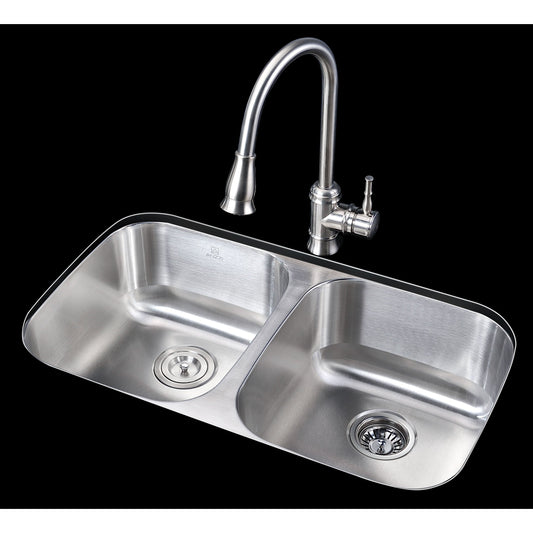 ANZZI Moore Series 32" Double Basin 60/40 Stainless Steel Undermount Kitchen Sink With Strainer, Drain Assembly and Brushed Nickel Sails Faucet