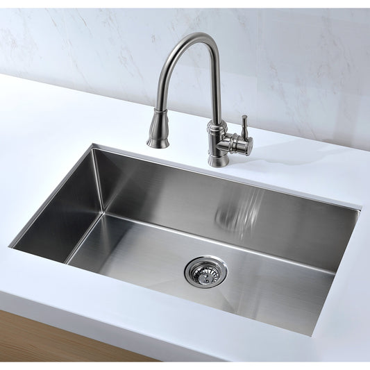 ANZZI Vanguard Series 32" Single Bowl Stainless Steel Undermount Kitchen Sink With Strainer and Drain Assembly