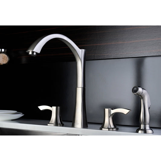 ANZZI Elysian Series 36" Double Basin 60/40 Stainless Steel Farmhouse Kitchen Sink With Strainer and Brushed Nickel Sails Faucet