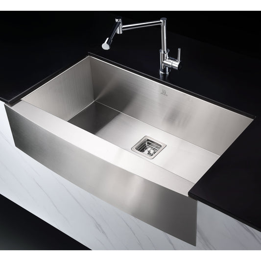ANZZI Elysian Series 32" Single Basin Stainless Steel Farmhouse Kitchen Sink With Chrome Strainer and Drain Assembly