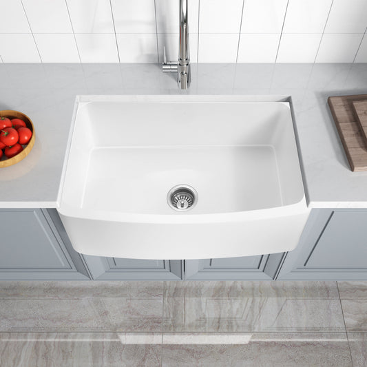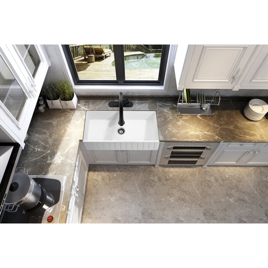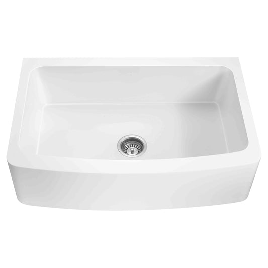 ANZZI Roine Series 30" x 18" Matte White Single Solid Surface Farmhouse Kitchen Sink