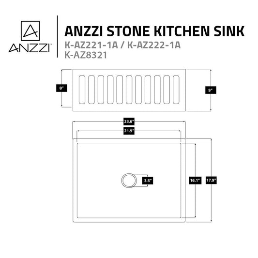 ANZZI Petima Series 24" Single Solid Surface Matte White Farmhouse Kitchen Sink