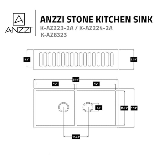 ANZZI Roine Series 35" x 18" Glossy White Double Solid Surface Farmhouse Kitchen Sink