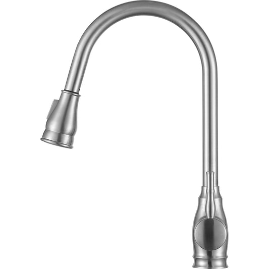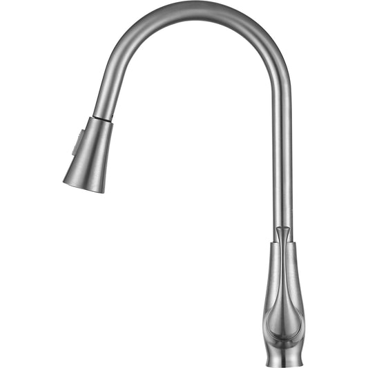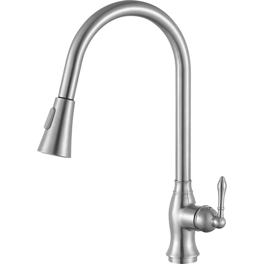 ANZZI Bell Series Single Hole Brushed Nickel Kitchen Faucet With Euro-Grip Pull Down Sprayer
