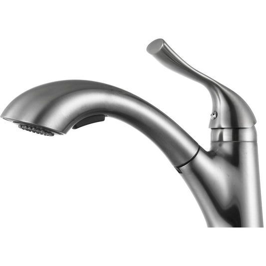 ANZZI Meadow Series Single Hole Brushed Nickel Kitchen Faucet With Euro-Grip Pull Down Sprayer