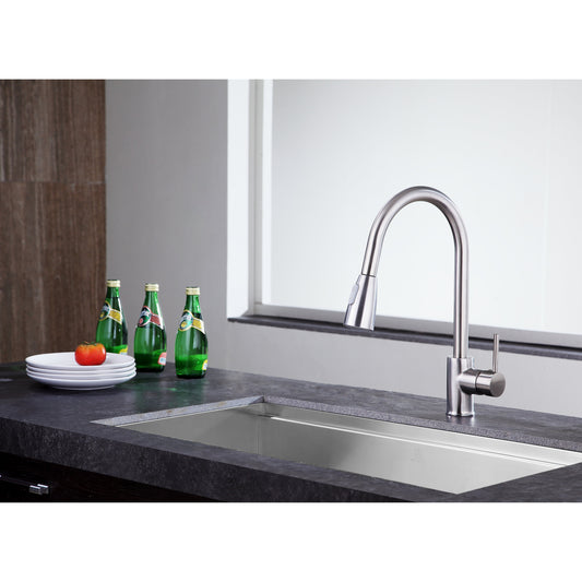 ANZZI Navona Series Single Hole Brushed Nickel Kitchen Faucet With Euro-Grip Pull Down Sprayer
