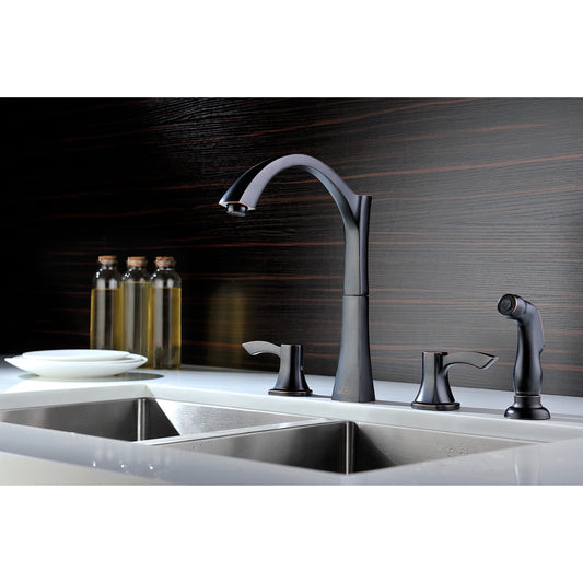 ANZZI Soave Series Double Hole Oil Rubbed Bronze Kitchen Faucet With Euro-Grip Pull Out Sprayer and 360-Degree Turning Spout