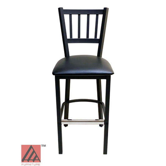 AAA Furniture Vertical Back 43" Black Metal Bar Stool with Black Grade 4 Vinyl Seat