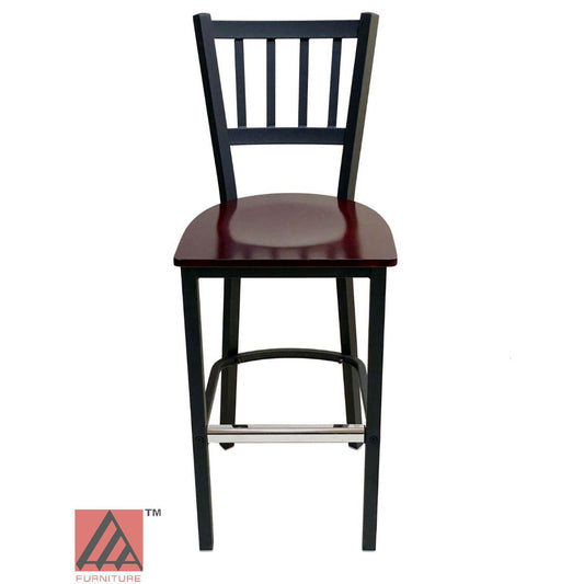 AAA Furniture Vertical Back 43" Black Metal Bar Stool with Brown Wood Seat