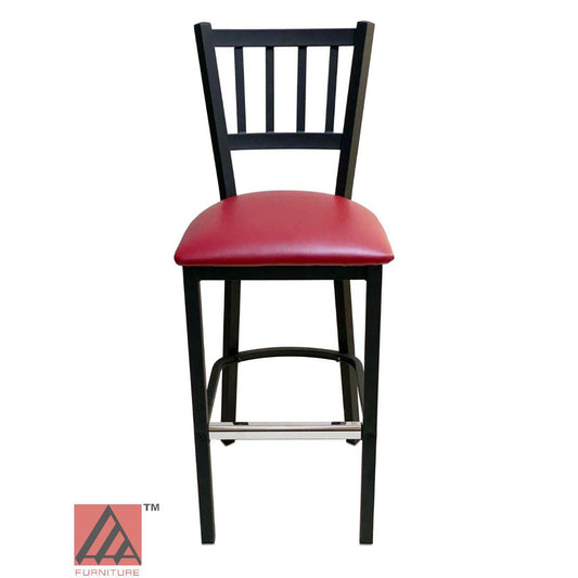 AAA Furniture Vertical Back 43" Black Metal Bar Stool with Claret Vinyl Seat