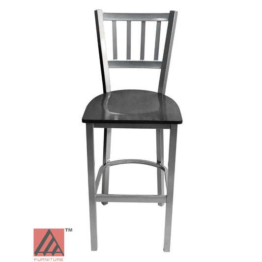 AAA Furniture Vertical Back 43" Silver Metal Bar Stool with Black Wood Seat