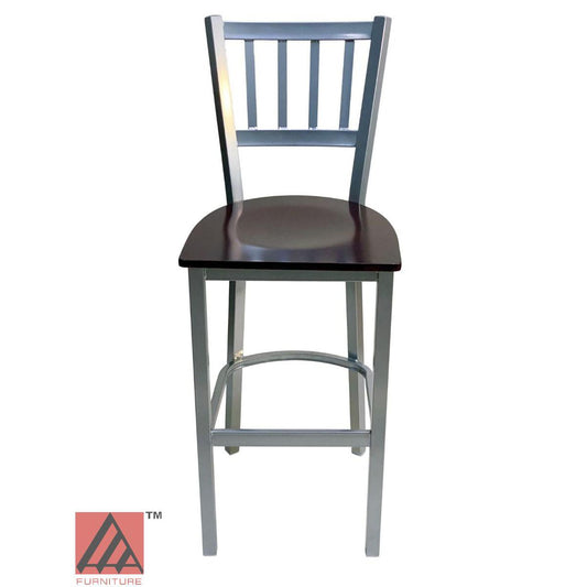 AAA Furniture Vertical Back 43" Silver Metal Bar Stool with Brown Wood Seat