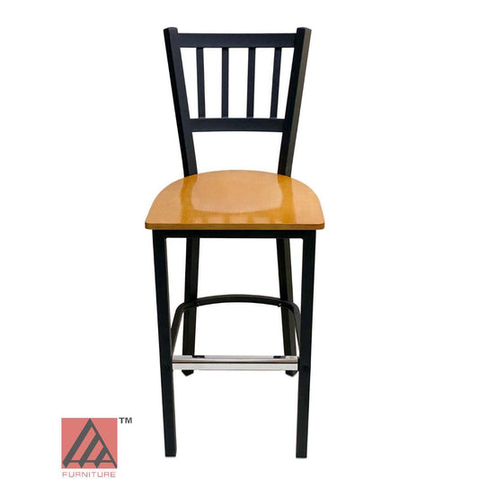 AAA Furniture Vertical Back 43" Black Metal Bar Stool with Natural Wood Seat