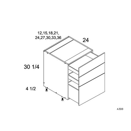 RTA Euro White Grain 30" 3-Drawer Base Cabinet with 2 Finished End Panels