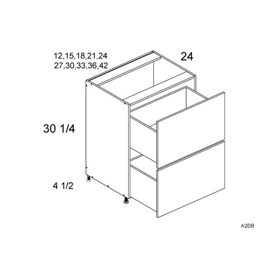 RTA Euro White Grain 30" 2-Drawer Base Cabinet with 1 Inner Drawer and 2 Finished End Panels