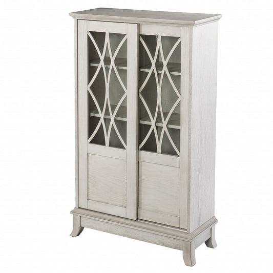 HomeRoots Sliding Double Door Accent Cabinet in Rustic White Finish