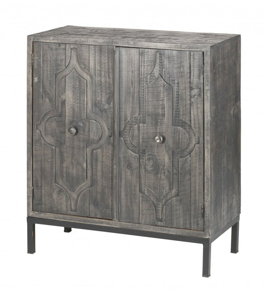 HomeRoots Wash Scroll Wood 2-Door Accent Cabinet in Rustic Gray Finish