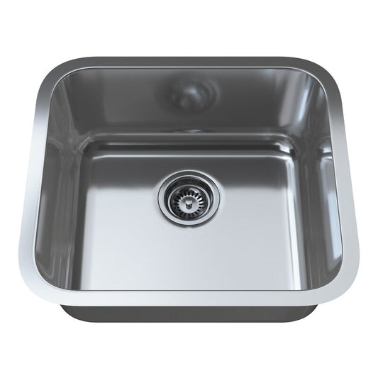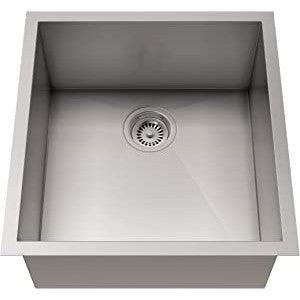 Cantrio Koncepts 19" 18-Gauge, 0 Radius Square Stainless Steel Undermount Kitchen Sink With Strainer Drain