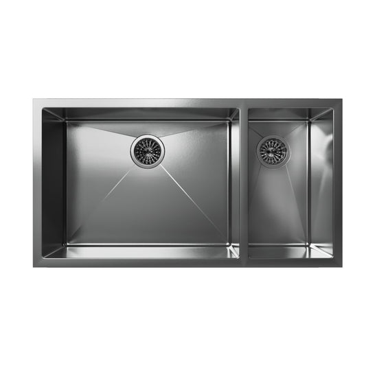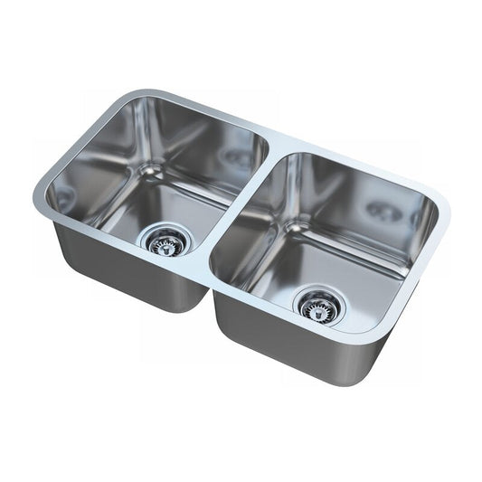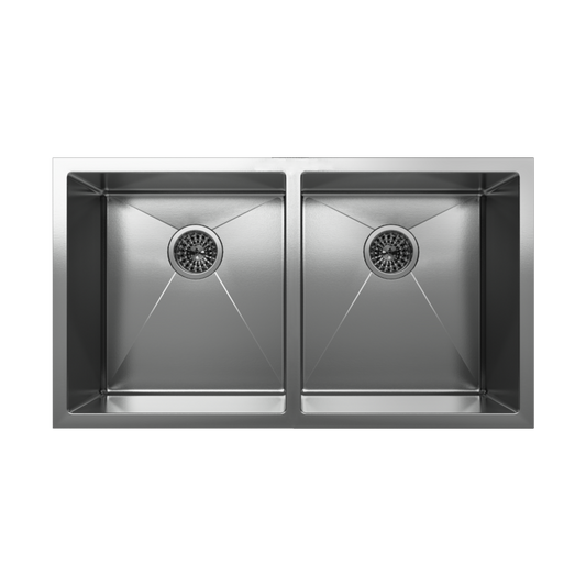 Cantrio Koncepts 33" Rectangle Undermount Stainless Steel Double Bowl Kitchen Sink With Strainer Drain