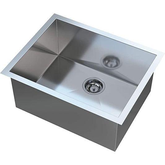 Cantrio Koncepts 22" 18-Gauge, 10mm Radius Square Stainless Steel Undermount Kitchen Sink With Strainer Drain